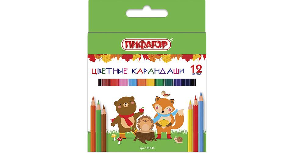 Карандаши 12цв. укороченные 181344 Пифагор